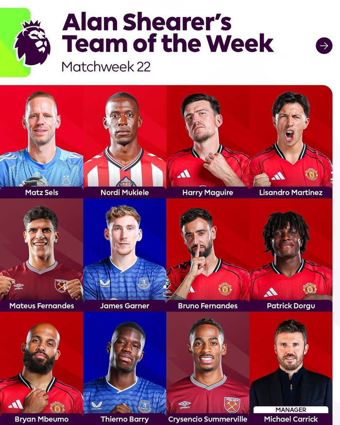 【官方】 #英超# 2025-26赛季英格兰🏴足球超级联赛第22轮最佳阵容。