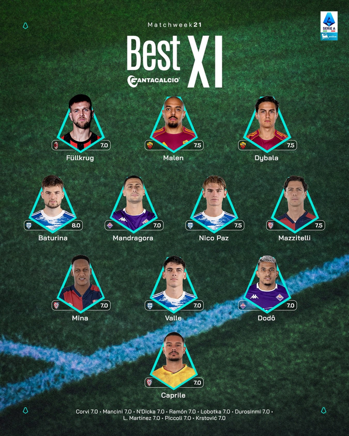 【官方】 🔴⚫️ 菲尔克鲁格🇩🇪入选#意甲联赛# 第21轮最佳阵容。👏🏻#sempremilan#