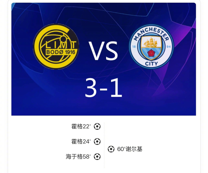 战报:博德闪耀3-1曼城,霍格双响,罗德里染红!