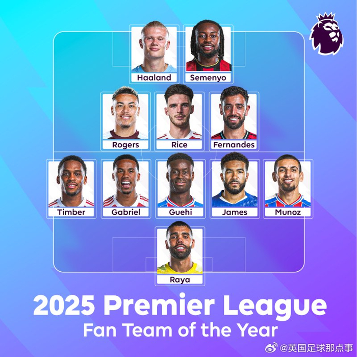 【你同意吗】英超官推发布由球迷评选的2025年度最佳阵容!✨#英超联赛#
