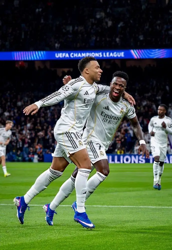 第26分钟,皇马再下一城!居莱尔中圈送出精准长传,维修斯左路反越位长途奔袭后无私横传,姆巴佩中路轻松推射空门完成梅开二度,2-0!这粒进球让姆巴佩本赛季欧冠6场已轰入11球,不仅刷新个人单赛季欧冠进球纪录,更超越1958-59赛季的方丹,成为欧冠历史单赛季进球数第二多的法国球员,仅次于2021-22赛季打入15球的本泽马。