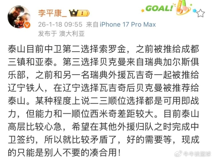 中超进入冬窗期之后,别的球队都在纷纷大手笔引援,唯独山东泰山至今毫无进展。不仅本土球员一个也没引来,外援方面只打算引进1个中后卫,可是到现在还毫无进展。山东泰山的引援效率引起了山东球迷的极度不满。据足球名记李平康透露,山东泰山外援中卫的引进并非没有目标,目前的情况是3选1,但是山东泰山俱乐部却迟迟下不了决心。