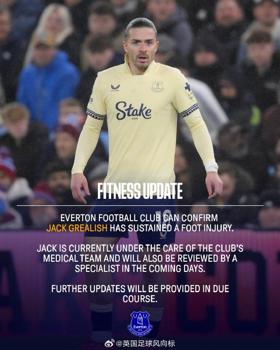 埃弗顿官方确认,球队的主力边锋格拉利什,遭遇脚部伤势,目前正接受医疗团队的照顾,接下来几天都会寻找骨伤专家的意见。