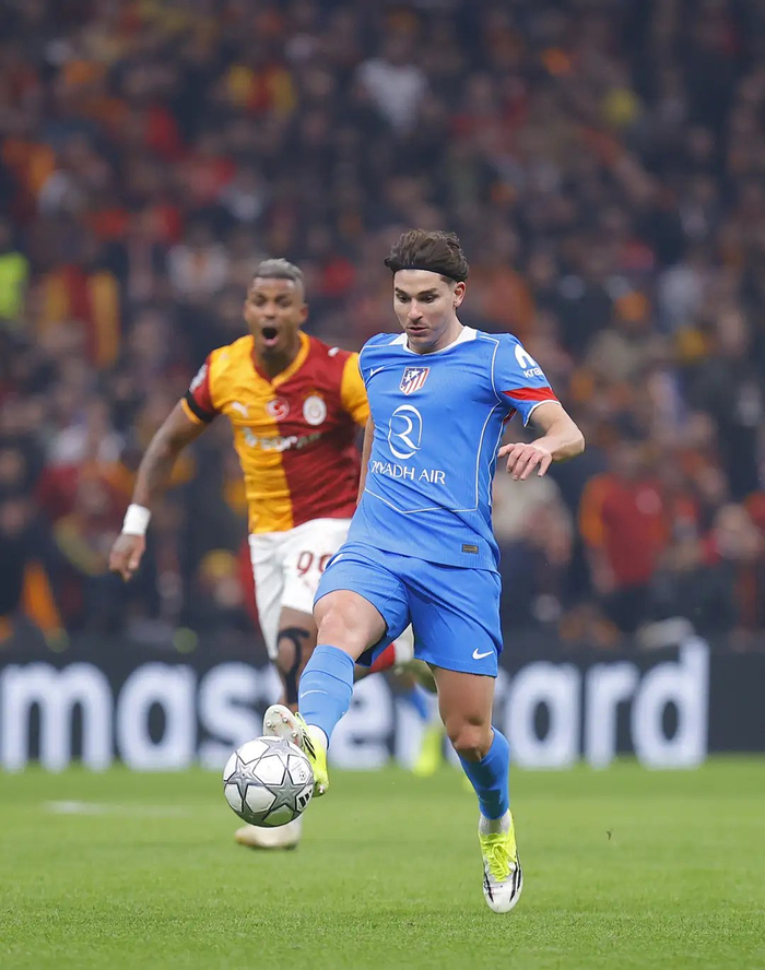 此役马竞沿用442阵型,索尔洛特搭档阿尔瓦雷斯出任双锋,朱利亚诺-西蒙尼、科克坐镇中场;加拉塔萨雷则由奥斯梅恩领衔4231阵型,萨内、勒米纳等主力悉数登场。比赛刚开打4分钟,马竞便取得梦幻开局,索尔洛特禁区回敲,阿尔瓦雷斯送妙传,鲁杰里传中助攻朱利亚诺-西蒙尼冲顶破门,1-0!
