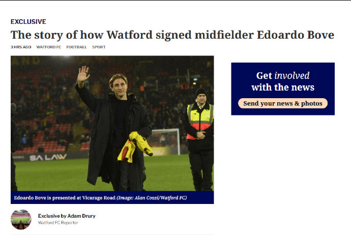 沃特福德观察者报跟队Adam Drury报道了博维加盟的幕后故事: