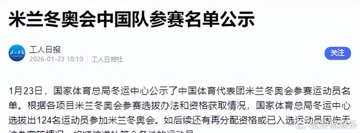 昨天晚上刷到冬运中心官网挂出来的米兰冬奥中国名单,一共124个人,比温哥华那次还多。数字挺大,但大家聊得最多的,反而是两个没在名单上的人:武大靖和刘少林。不是说他们不行了,而是这次,真的没按老路走。