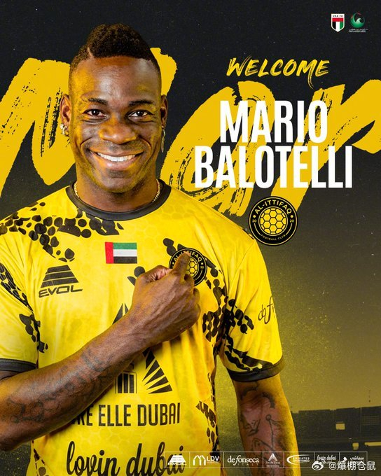 【官方】35岁的意大利前锋巴洛特利加盟阿联酋二级联赛的迪拜协作,他效力过国米,曼城,米兰,利物浦,尼斯,马赛,布雷西亚,蒙扎,代米尔体育,锡永,热那亚等队。