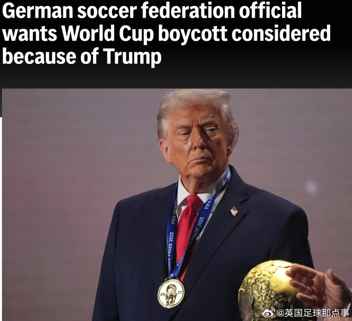 美联社:一名德国足协官员表示,应考虑因特朗普而抵制2026世界杯。