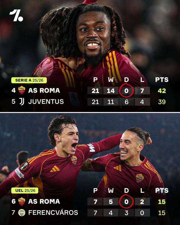 罗马本赛季就是不肯接受平局……😂👀各项赛事至今已进行了28场比赛,却从未尝过平局。