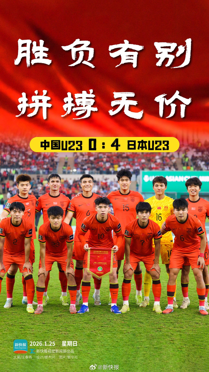 【#U23国足亚军不是终点#】北京时间1月24日23时,2026沙特阿拉伯U23亚洲杯决赛在吉达的费萨尔王子体育场打响。面对卫冕冠军,首次闯进决赛的中国队(U23国足)在第12分钟终止了赛事不失球纪录,并最终以0∶4告负。日本队夺冠,中国队获得亚军。#U23国足亚军##拜合拉木上了#