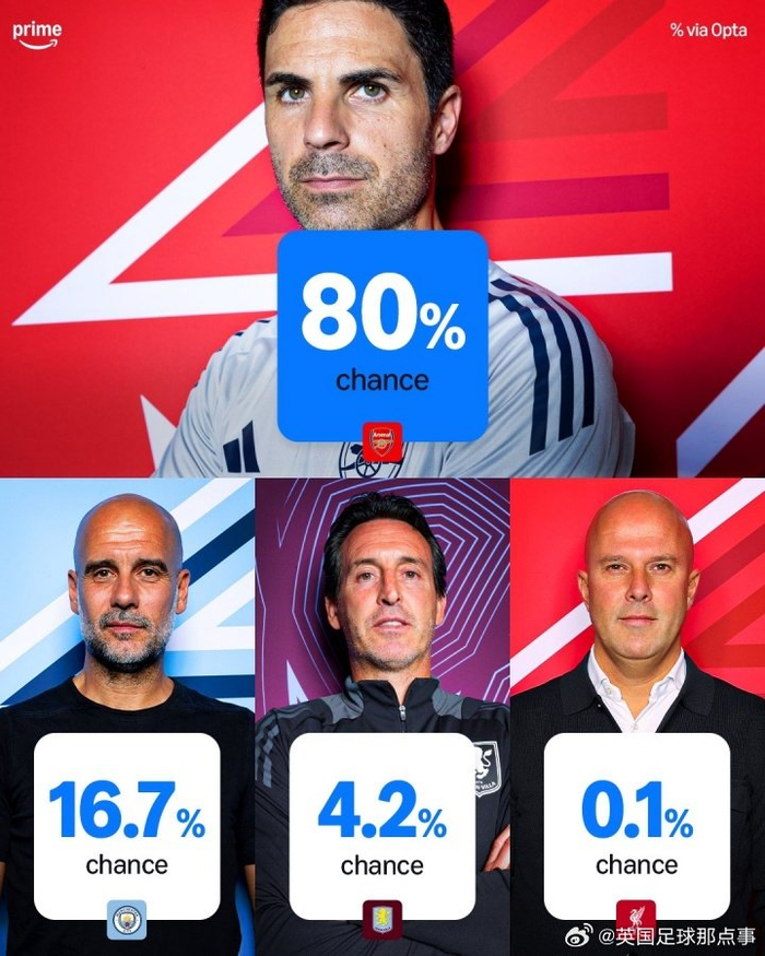 英超赛季过半,Opta更新英超夺冠概率🏆