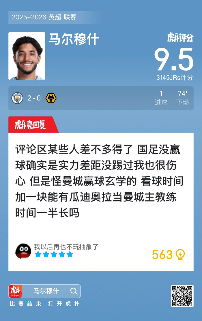 #曼城2比0狼队#马尔穆什打进一球,这表现你给几分?