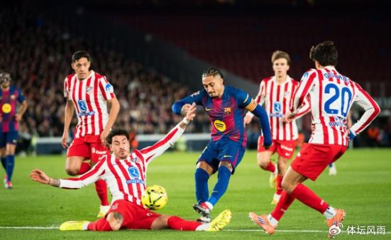 主场落后的巴萨迅速做出回应,仅用7分钟便凭借标志性传控配合扳平比分。第26分钟,佩德里展现大师级传球功底,送出穿透性直塞击穿马竞防线,拉菲尼亚前插形成单刀,面对出击的门将奥布拉克沉着晃过,推射空门得手,比分改写为1-1。