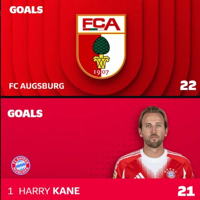 除此之外,他们也晒照调侃了凯恩本场无表现,但也晒出了凯恩与奥格斯堡本赛季的联赛进球数对比,表示这只是个玩笑。