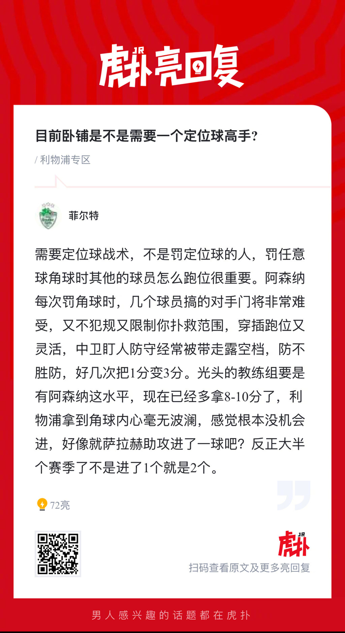利物浦球迷来说说,目前你觉得红军是否需要一个定位球高手?