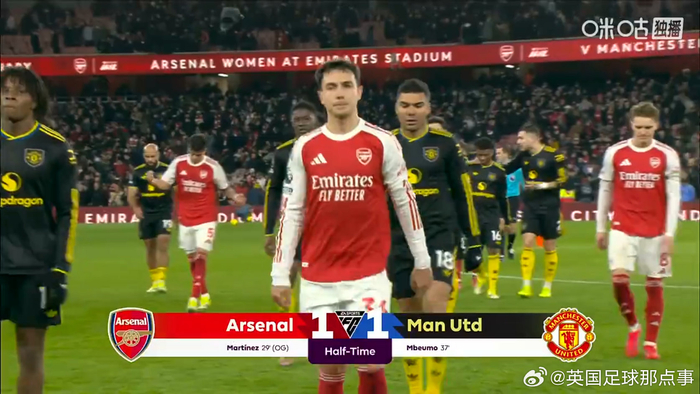 半场结束,阿森纳暂1-1战平曼联