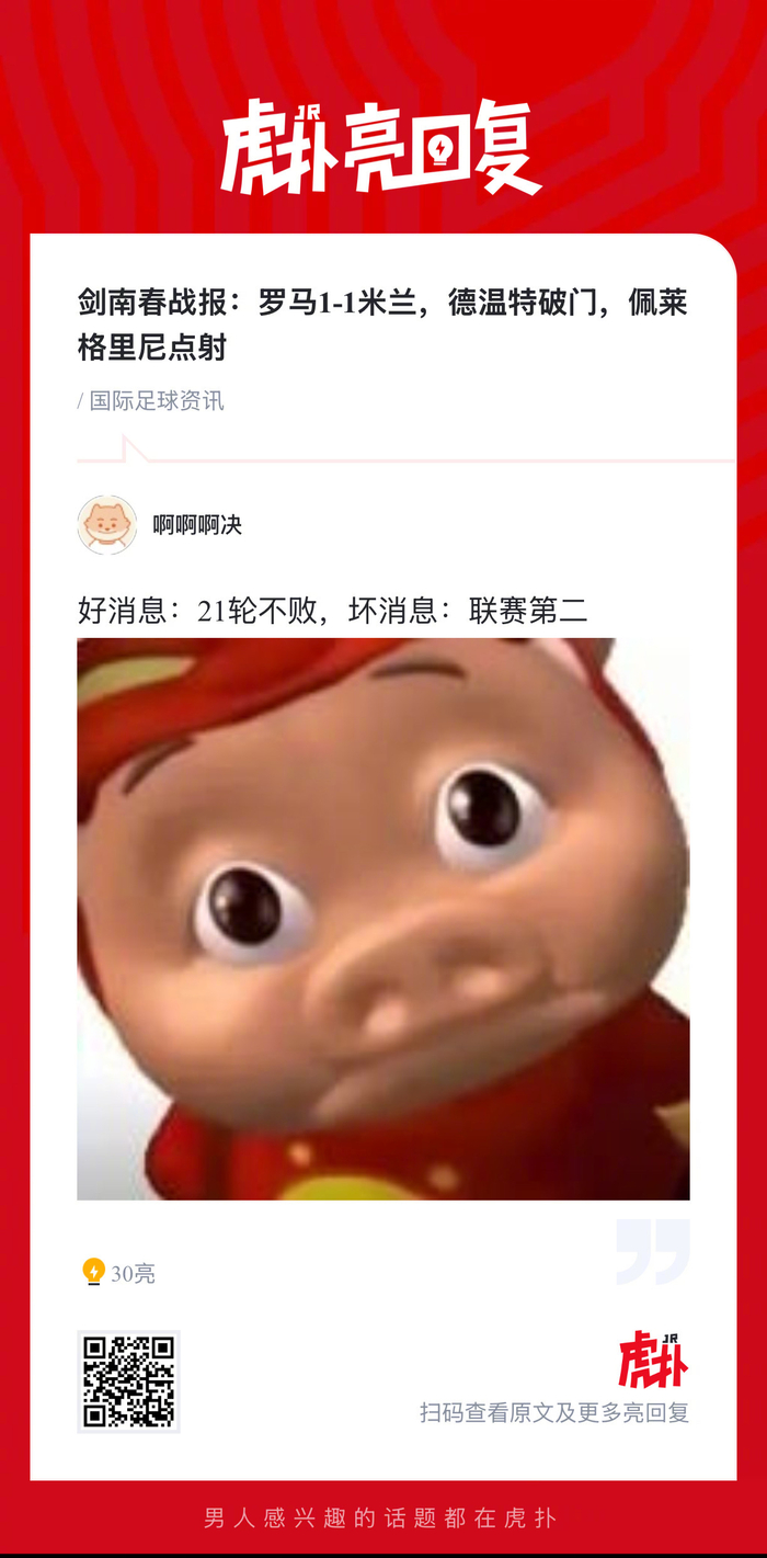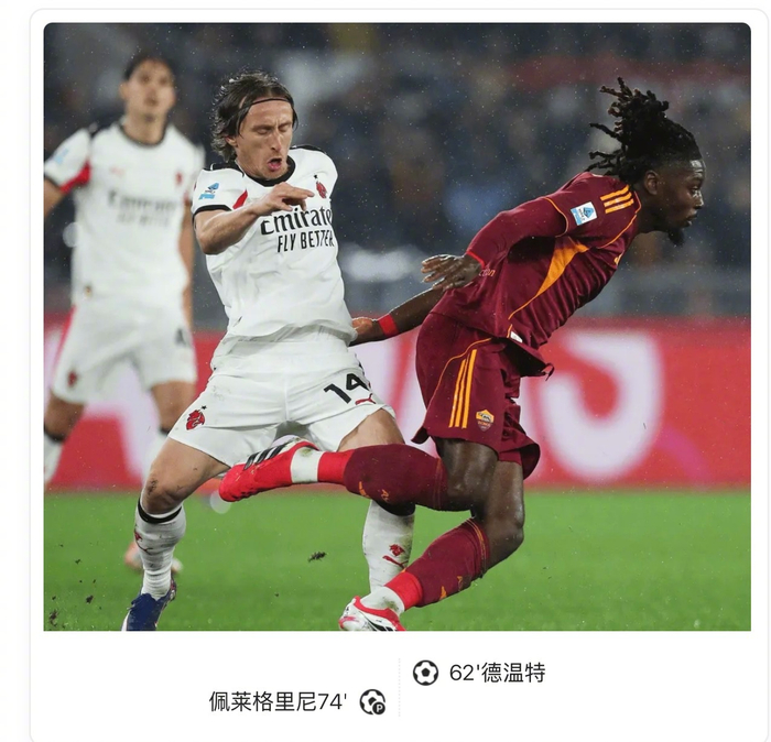 比赛中德温特和佩莱格里尼各入一球,最终罗马与AC米兰1-1握手言和。