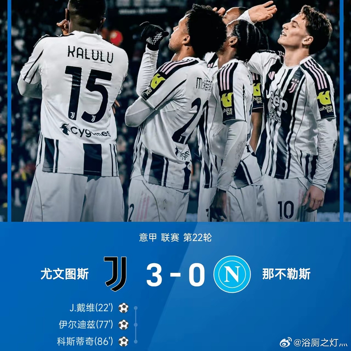 1月26日凌晨1点,尤文图斯主场3-0完胜那不勒斯。
