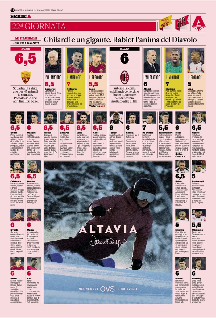 【米体】 #罗马1比1AC米兰# 赛后评分: