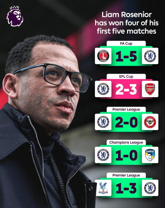 #水晶宫1比3切尔西# 据统计,切尔西主帅罗西尼尔也是杰拉德后首位,执教前2场英超均获胜英格兰主帅。