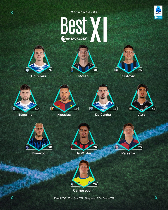 【官方】 🔴⚫️ 德温特🇧🇪入选#意甲联赛# 第22轮最佳阵容。👏🏻#sempremilan#