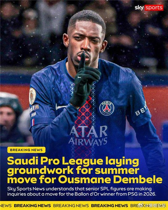 【重磅交易】天空体育:沙特联赛高层准备在2026年美加墨世界杯后求购巴黎的金球奖得主登贝莱,这名法国国脚的合同还剩2年半,与巴黎的续约谈判进展不顺利。