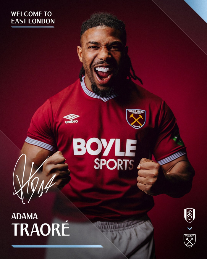 【官宣】 #英超# 西汉姆联队官方宣布:正式签下阿达玛·特拉奥雷🇪🇸。