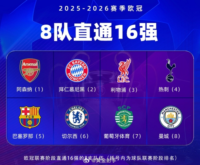 #曼城[超话]# 欧冠联赛阶段第八轮比赛全部结束,排名前八的球队确定。