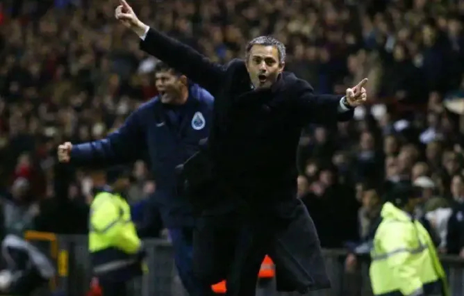 再向前闪回,21年前,在老特拉福德场边,那个穿着长款风衣、帅气的波尔图年轻教练在边线狂奔数十米,庆祝他的球队在90分钟绝杀淘汰曼联。