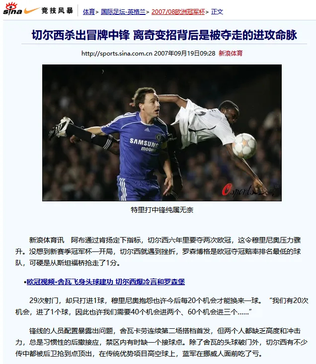 时光闪回,2007年欧冠对罗森博格,那是导致穆帅在切尔西(一期)下课的一战。德罗巴和皮萨罗伤停,需要搏命的穆里尼奥,疯狂把特里顶上去打中锋争高点……