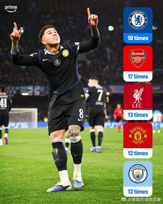 PrimeSport:切尔西18次晋级欧冠16强,英格兰球队最多😉#那不勒斯2比3切尔西#