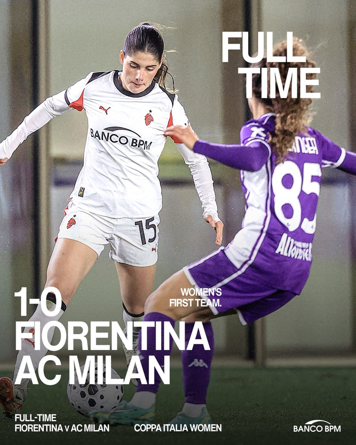 【止步八强❌】 #意大利杯# 2025-26赛季女足意大利杯1/4决赛次回合:🔴⚫️ 米兰女足客场0:1不敌佛罗伦萨女足,两个回合总比分1:2,无缘下一轮。#sempremilan#