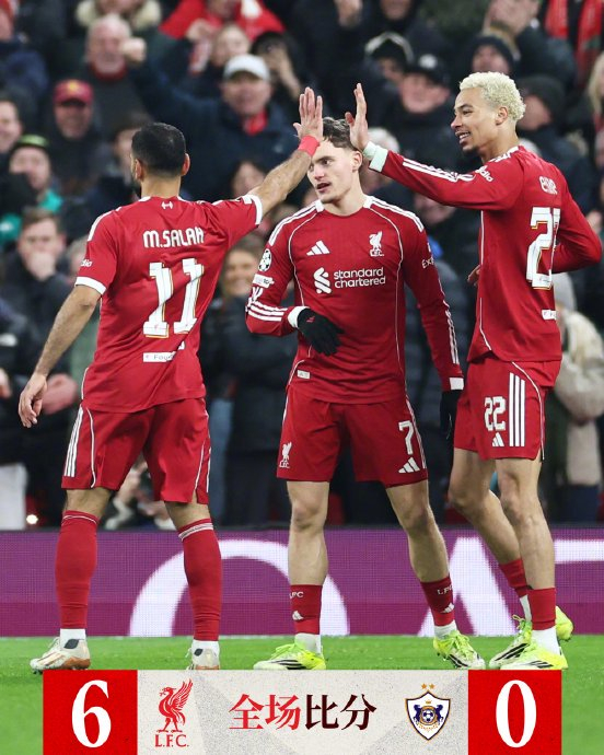 在2026年1月29日的欧冠联赛阶段收官战中,利物浦主场6-0横扫阿塞拜疆球队卡拉巴赫,以小组第三身份直通16强,这场大胜不仅终结了球队对阵非五大联赛球队的“魔咒”,更因范戴克创纪录的助攻帽子戏法引发全网热议。