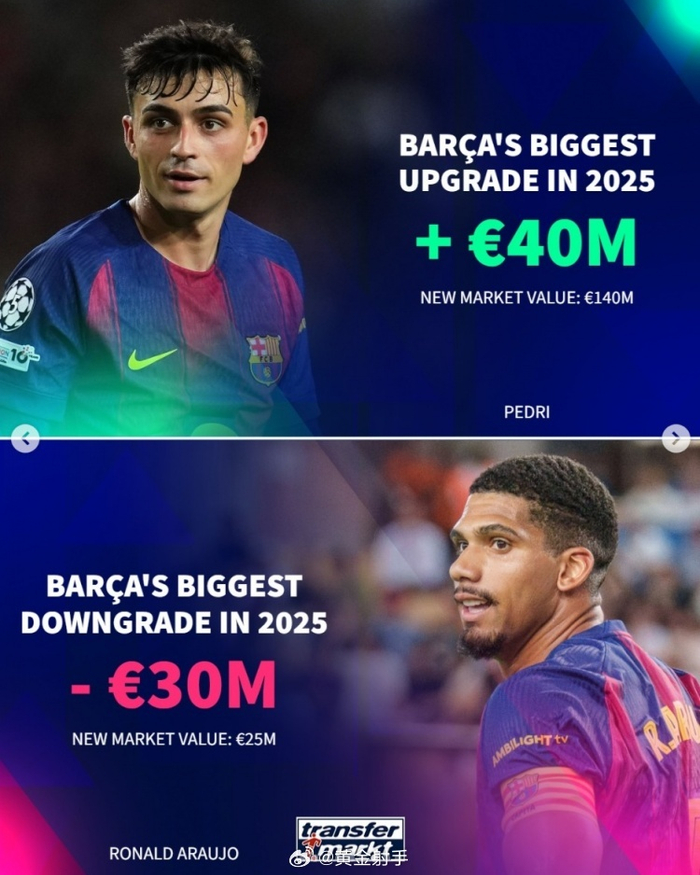 巴萨:佩德里+4000万、阿劳霍-3000万