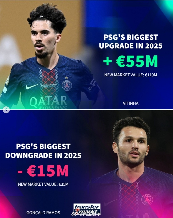 巴黎:维蒂尼亚+5500万、贡萨洛·拉莫斯-1500万