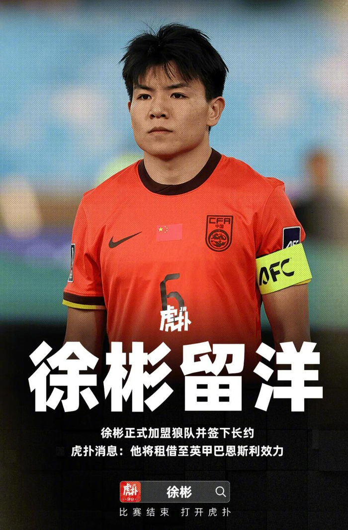虎扑从消息源处得知,英超狼队和中国U23队长徐彬签约,双方签下一份长期合同。