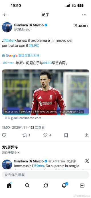 一个本地聚合器个人号发琼斯的一些消息,以及皮锡进和罗马诺互怼&迪马乔的最新消息。