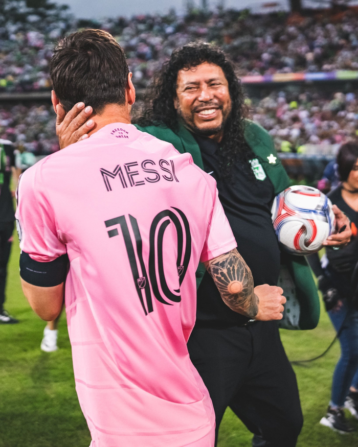梅西赛前与哥伦比亚传奇门将伊基塔互动!!