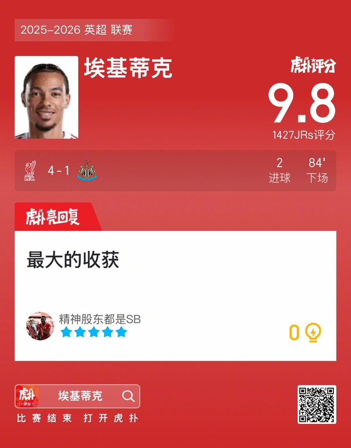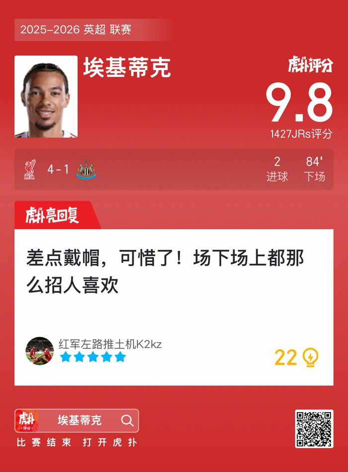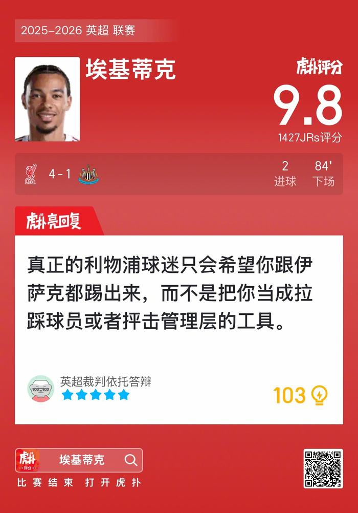 #利物浦4比1纽卡斯尔联#埃基蒂克打进两球,这表现怎么吹?