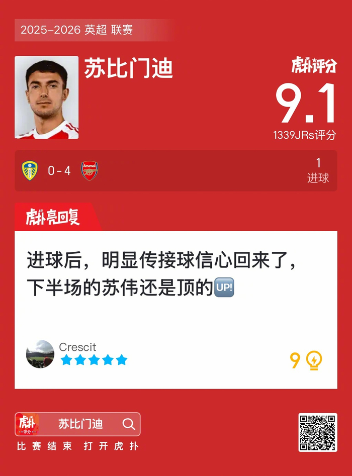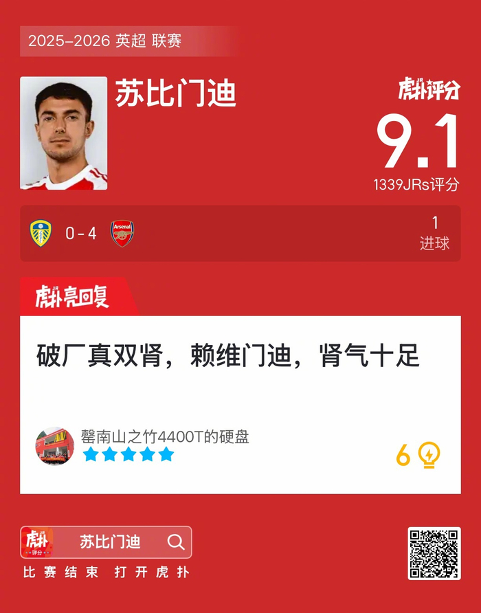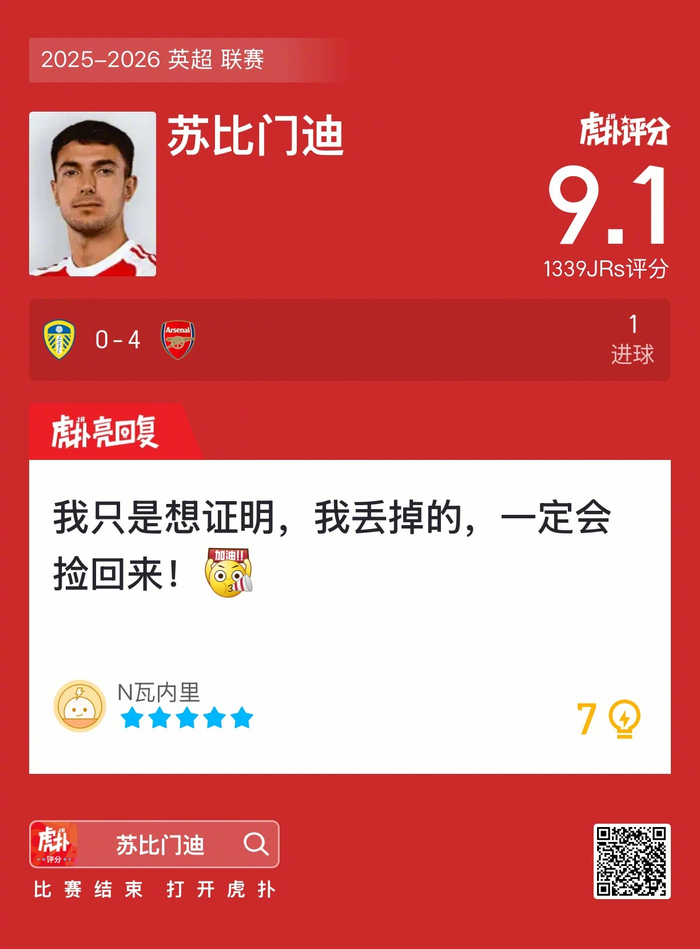 #利兹联0比4阿森纳#苏比门迪打进一球,这表现你觉得如何?