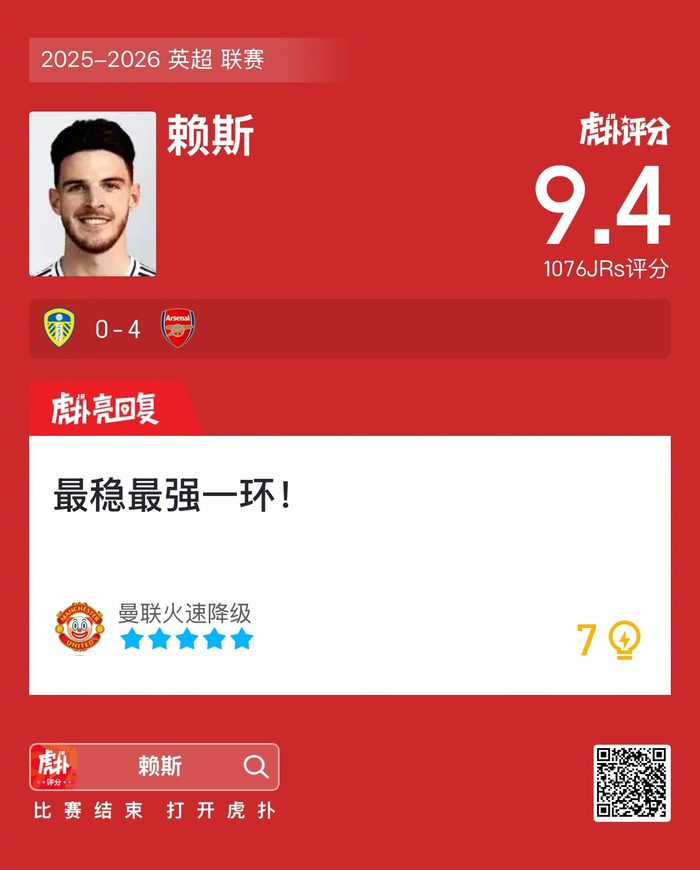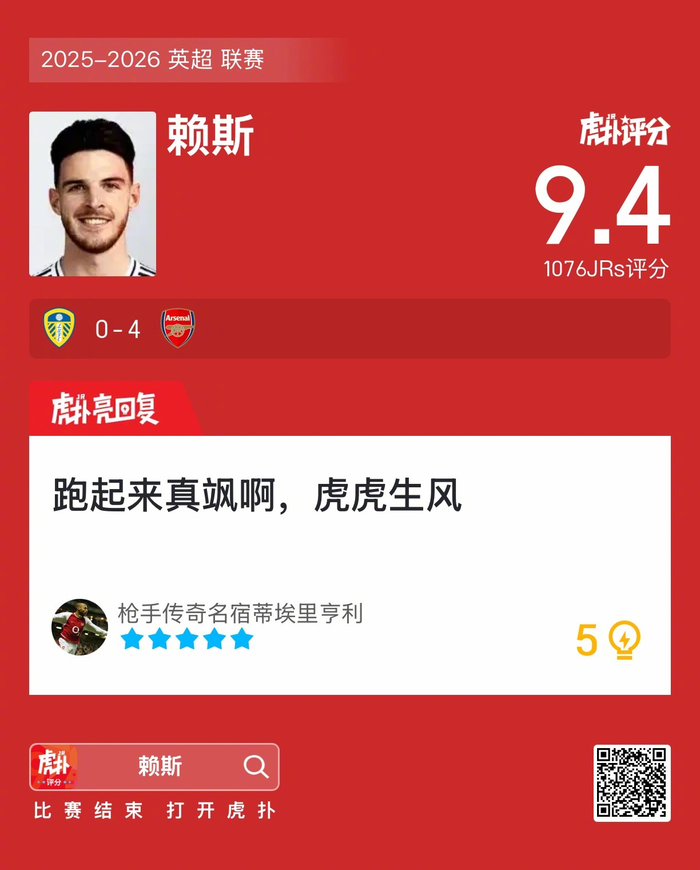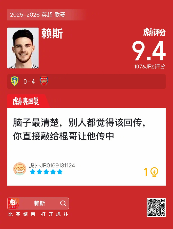 #利兹联0比4阿森纳#你觉得赖斯这场表现发挥如何?