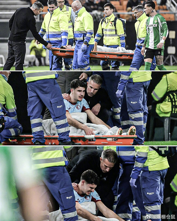 【无需手术】费耶诺德主教练范佩西的儿子沙奎尔-范佩西在欧联杯比赛中受伤,被担架抬下场。