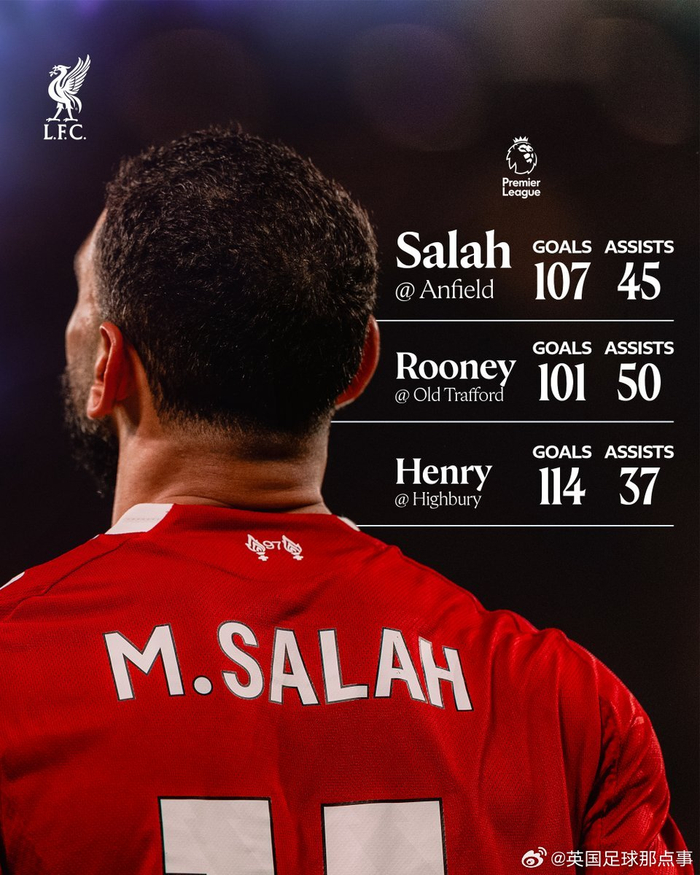 官方:萨拉赫如今独占英超单一球场参与进球数最多的纪录👑#利物浦4比1纽卡斯尔联#
