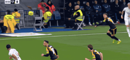上半场结束,皇马1-0暂时领先。下半场开始仅仅仅4分钟,巴列卡诺就扳平比分。