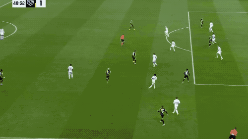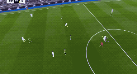第15分钟,皇马打出快速反击,维尼修斯毫不犹豫选择单干,禁区内一对三,兜射远角破门。