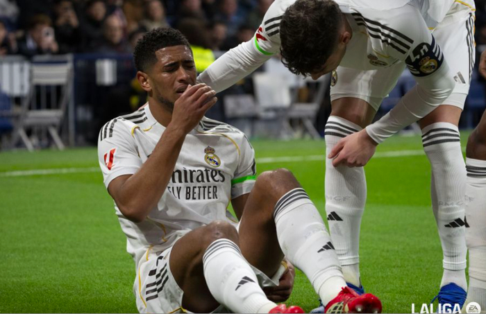 第9分钟,皇马遇到了重大打击,贝林厄姆无球跑动的过程中,捂住左大腿后侧的肌肉,疑似肌肉拉伤,痛苦倒地。