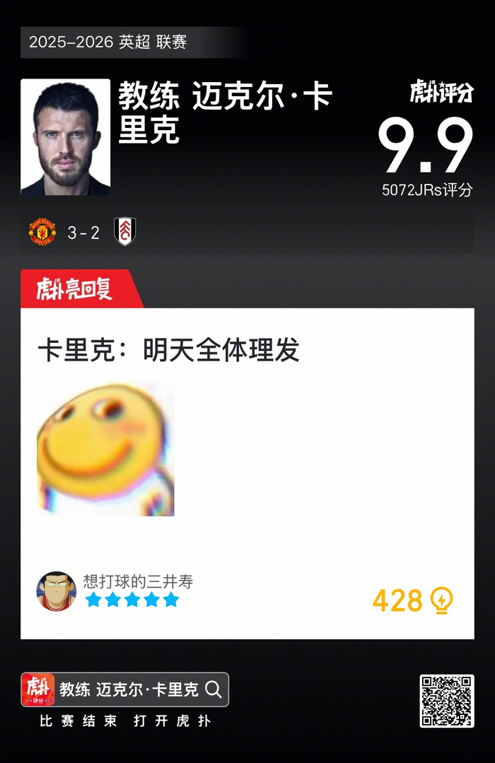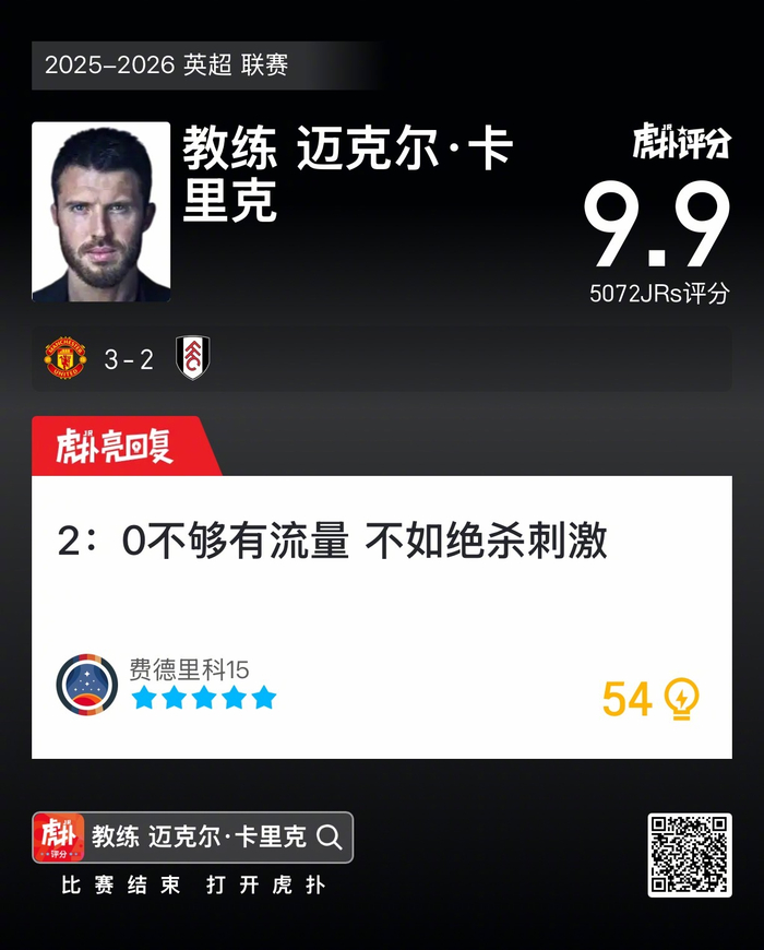 #曼联3比2富勒姆#卡里克本场比赛的排兵布阵,你觉得合理吗?