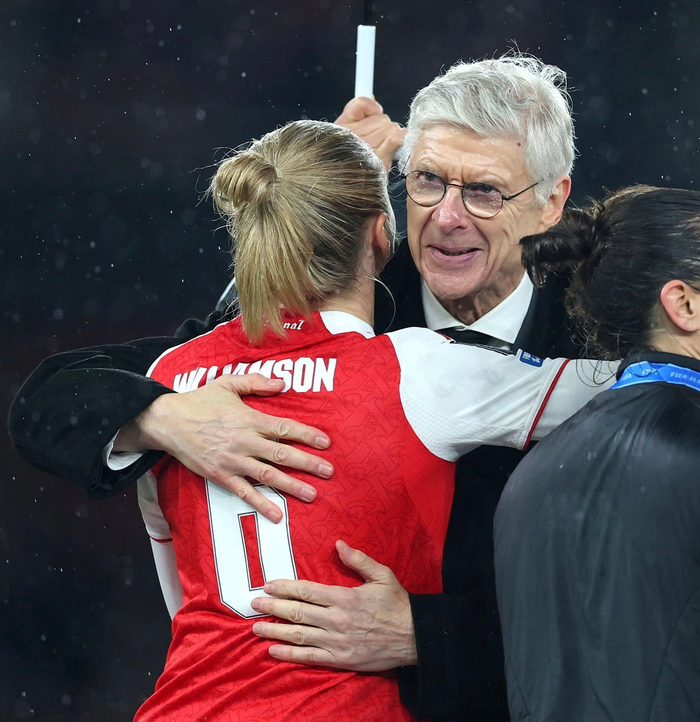 雷妮姐还有莉娅都与@阿森纳足球俱乐部 传奇教父温格来了个温暖的拥抱