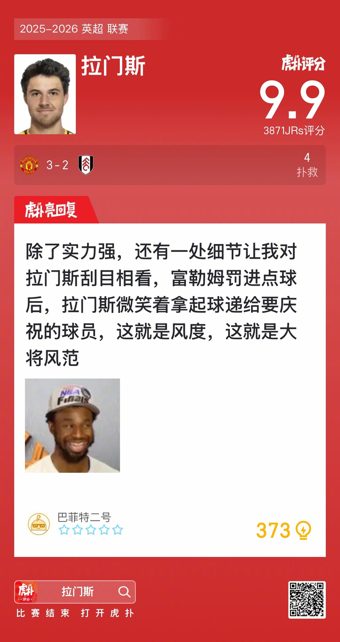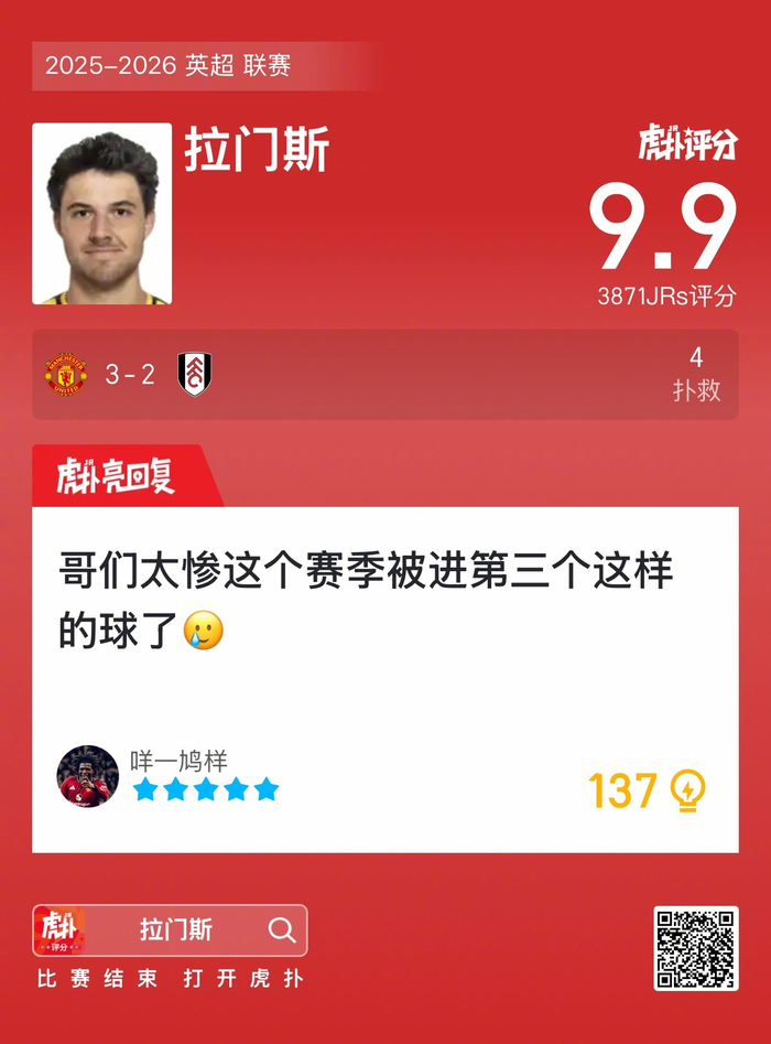 #曼联3比2富勒姆#拉门斯贡献4次扑救,这表现你给几分?