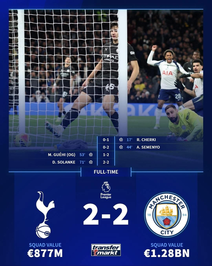 #热刺2比2曼城#曼城距离前面的阿森纳有6分了距离后面的曼联也是6分